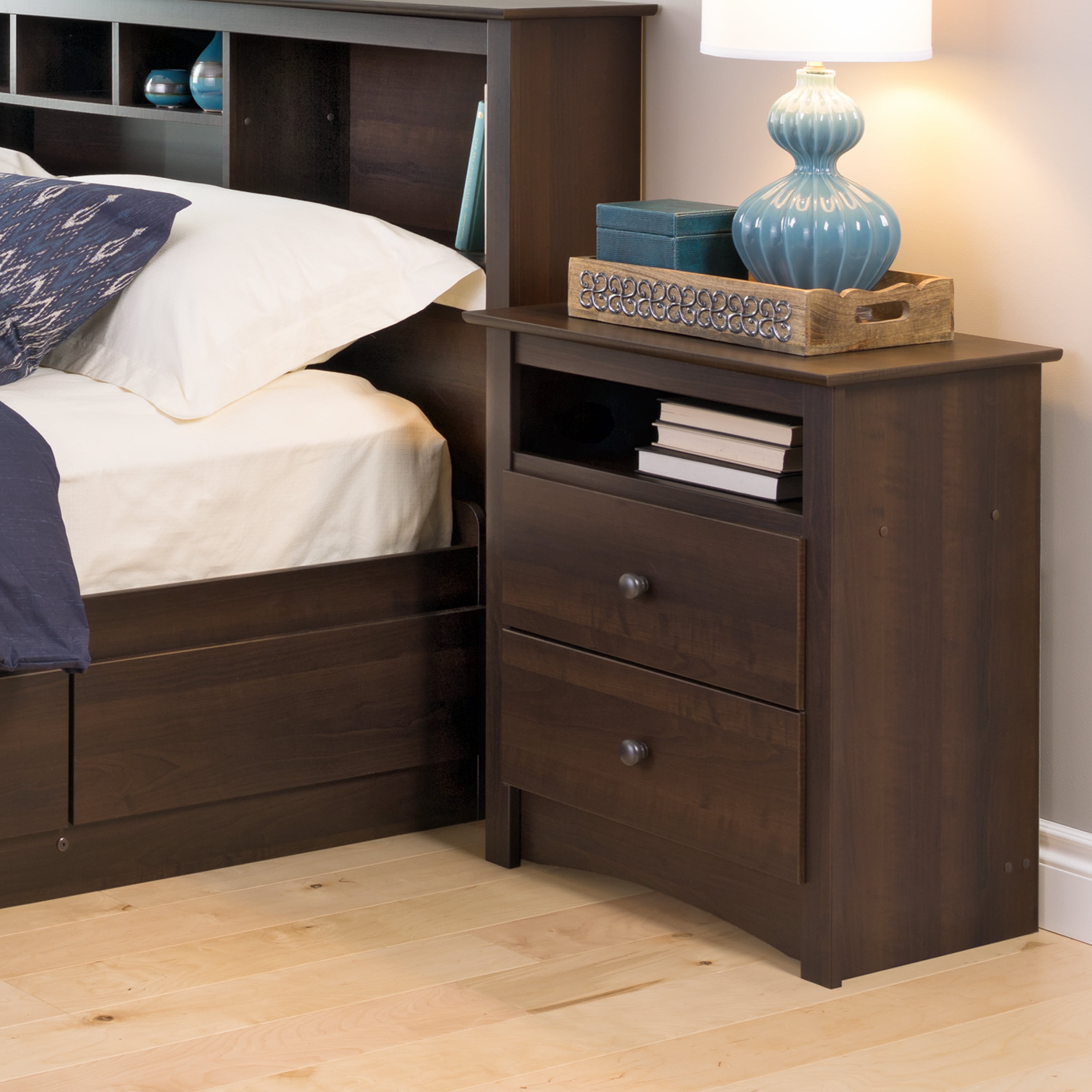 prepac fremont 2 drawer nightstand with open shelf espresso tall